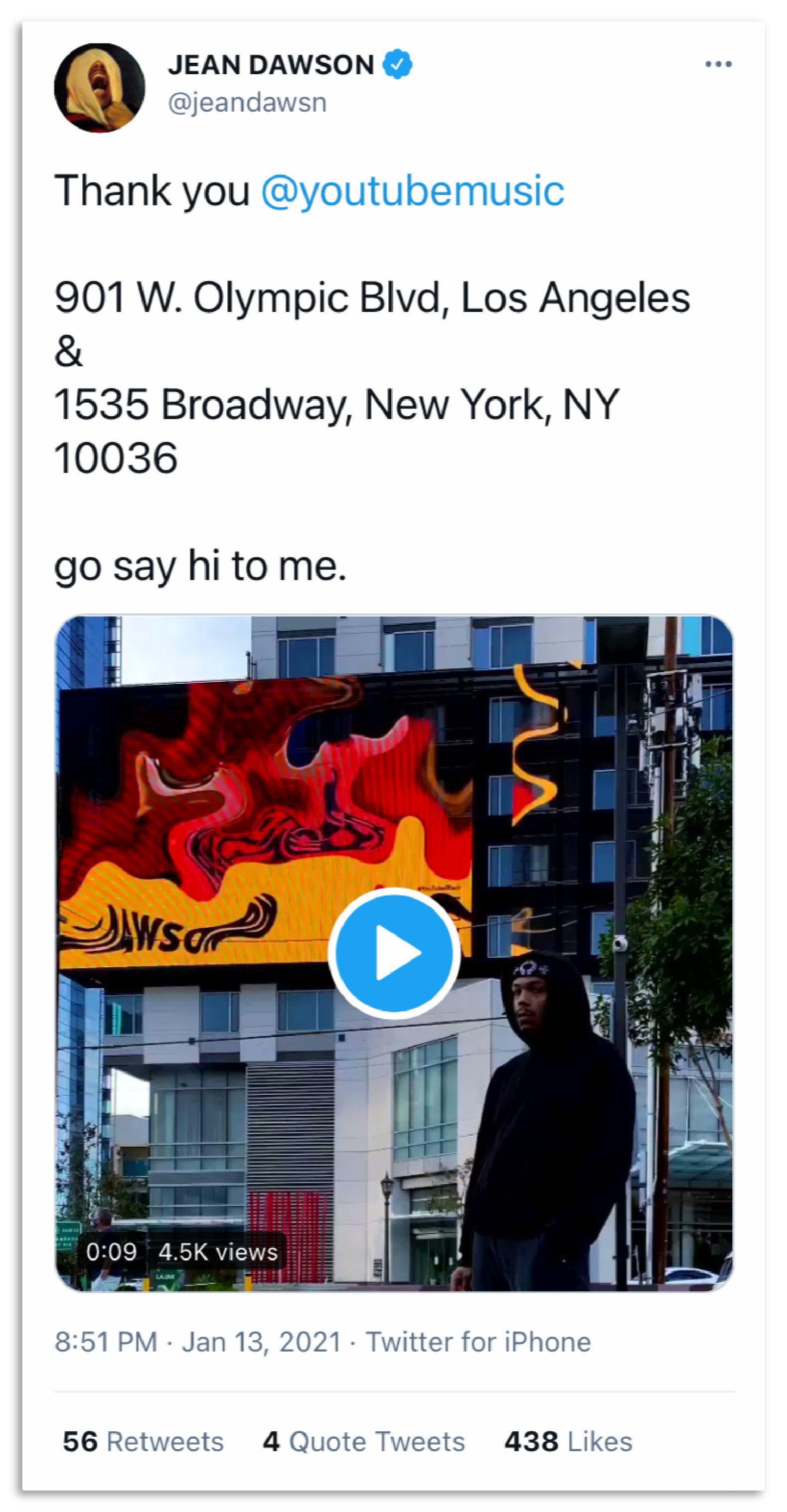 YouTube Music's RELEASED playlist serves as a way for music lovers to find the hottest new tracks from today's top talent within the music industry. Coinciding with the update of the playlist every Friday are billboards (placed in New York, Los Angeles, and London).